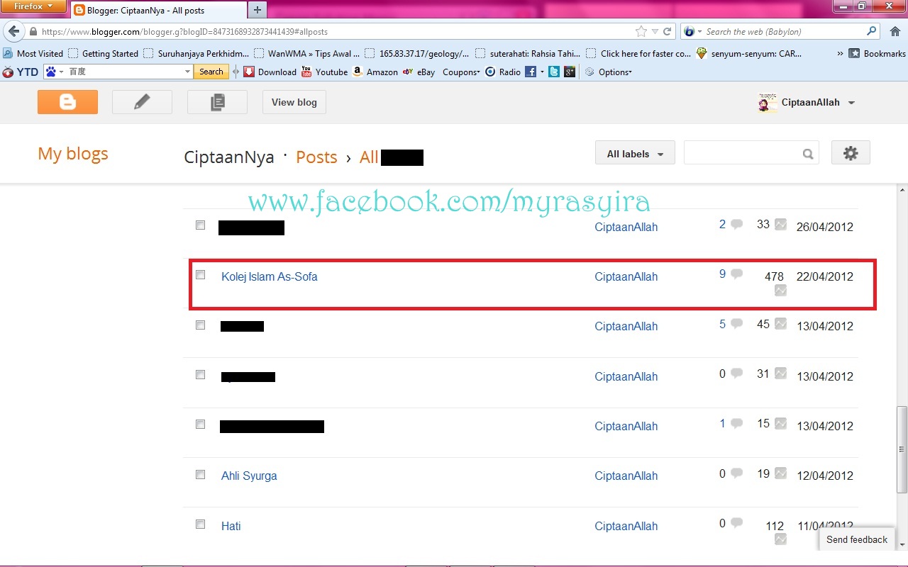 So, bila ana click je perkataan tu, ana akan lihat post yang manakah yang sering menjadi tumpuan ramai.. dan alhamdulillah ini apa yang ana dapat..